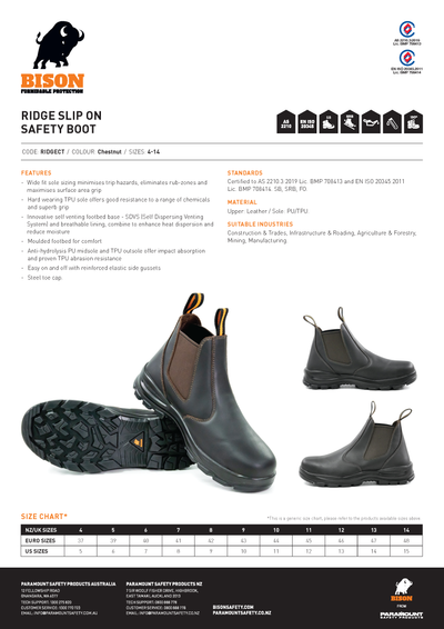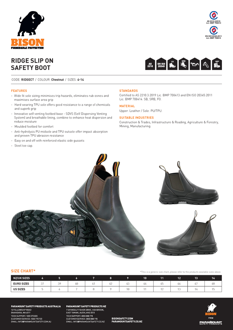 Bison Ridge Slip-on E/S Steel Toe Safety Workboot Chestnut Sizes 4 - 14