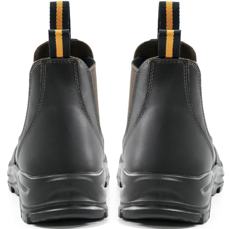 These are easy-on and easy-off with reinforced elastic side gussets, and a steel toe.