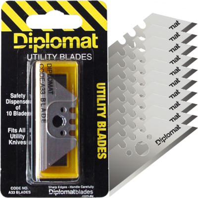 Diplomat A33BLADES are Safety Knife Blade replacements for the Diplomat A33, A27, A37 and A38 knives and fits most Utility knives.