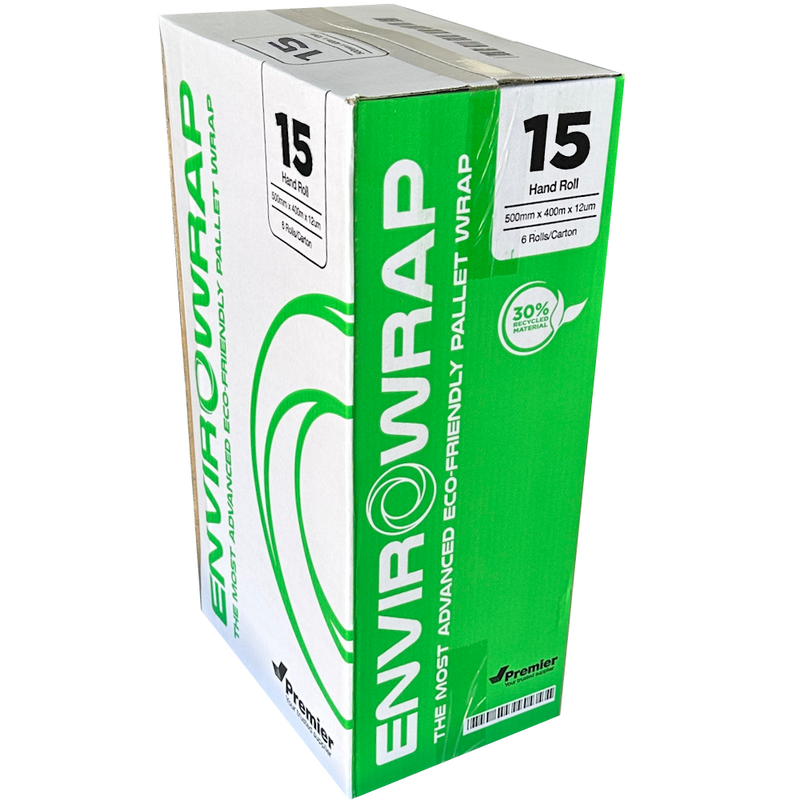 ENVIROWRAP 15 Transparent 30% Recycled Content Pre-stretch Hand Pallet Wrap 500mm x 300m 15µm (Carton 6 Rolls)