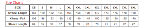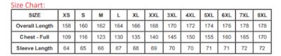 Available in sizes 2XS - 8XL.