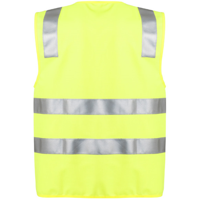 Hi Vis Yellow Day/Night Use Double Hoop Zipped Vest Sizes XS - 3XL + 5XL + 7XL
