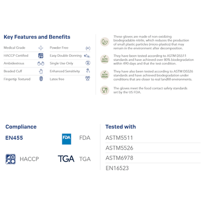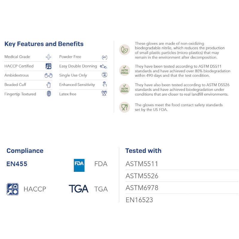 Medicom's Blue Disposable EcoSafe Biodegradable Nitrile Medical Examination Glove are the latest in environmentally friendly biodegradability technology.