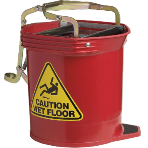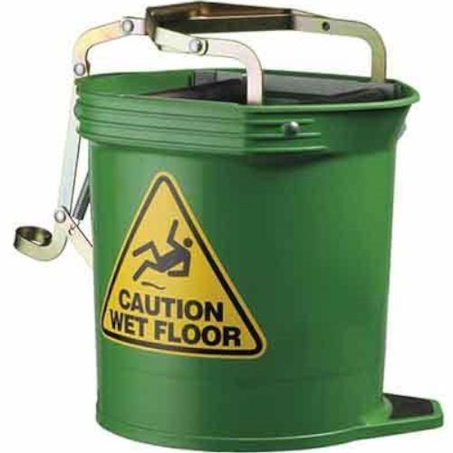 This Wringer Bucket is ergonomic with an easy action wringing system and displays a Wet Floor Warning Sign on its side for safety.