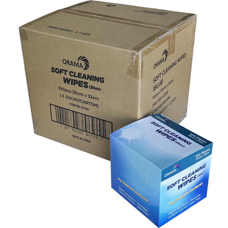ORAMA Blue Soft Absorbent Cleaning Wipes 30cm x 33cm (Pack 100 Wipes)