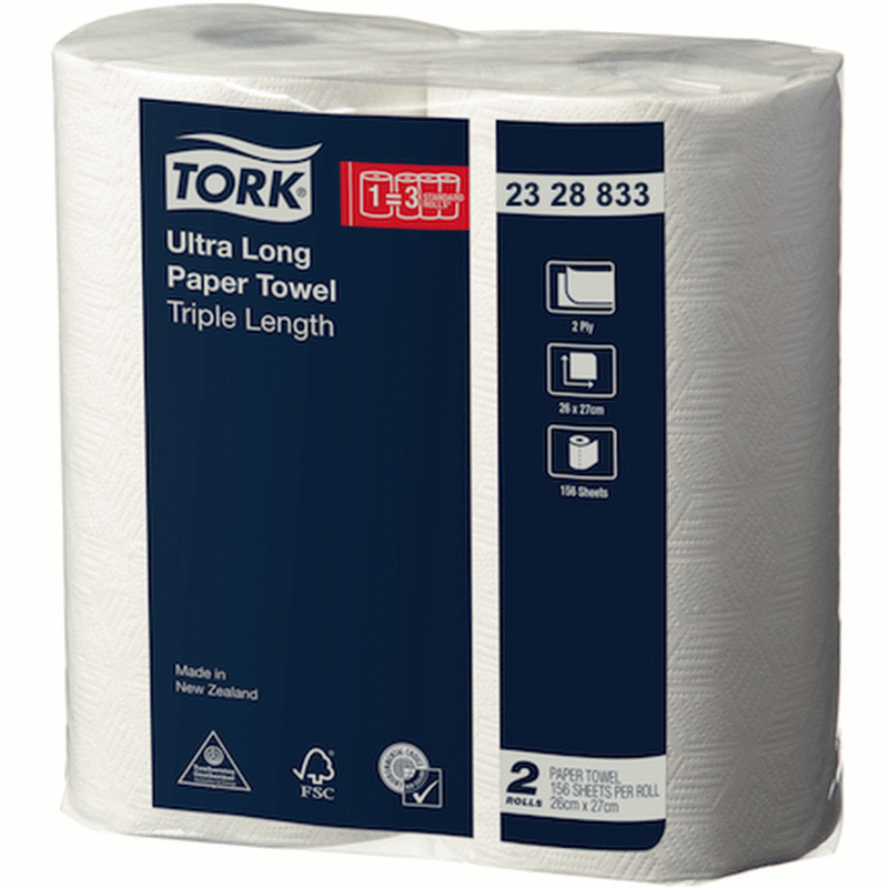 Tork's White 2328833 Premium Ultra Long Paper Towel (Triple Length) is three times longer than standard 60 sheet paper towel rolls which makes it a handy option.