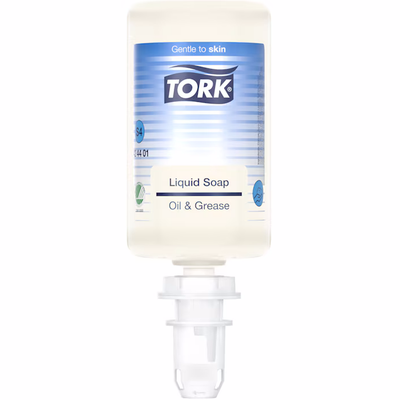 Tork's 424401 S4 System Premium Oil & Grease Liquid Soap is formulated with a fat-dissolving ingredient that is highly effective, yet gentle on skin.