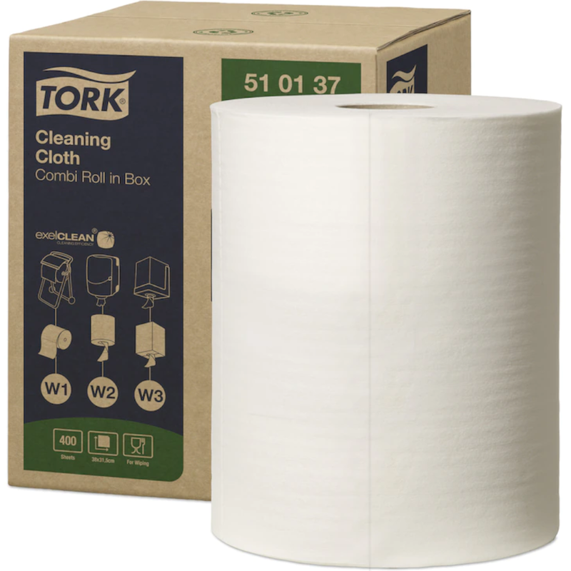 Tork 510137 White W1/W2/W3 System Multi-purpose Cleaning Cloth Combi- Roll 1-ply 38cm x 31.5cm 152m (Roll 400 Sheets) (Carton 1 Roll)