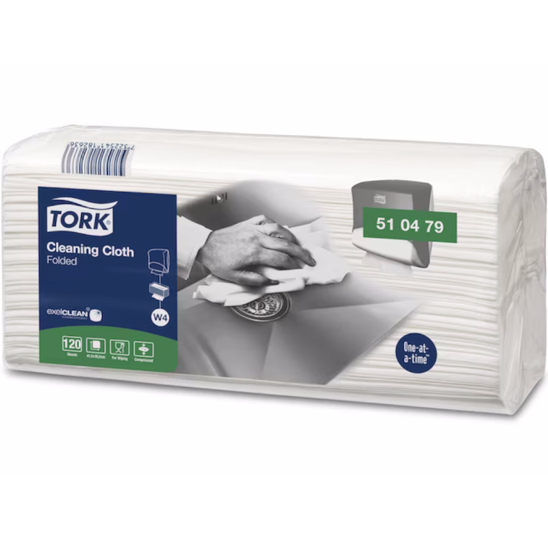 Tork's White 510479 W4 System Premium Folded Cleaning Cloths are a soft and flexible multi-purpose cloth that quickly absorbs liquids and oil.