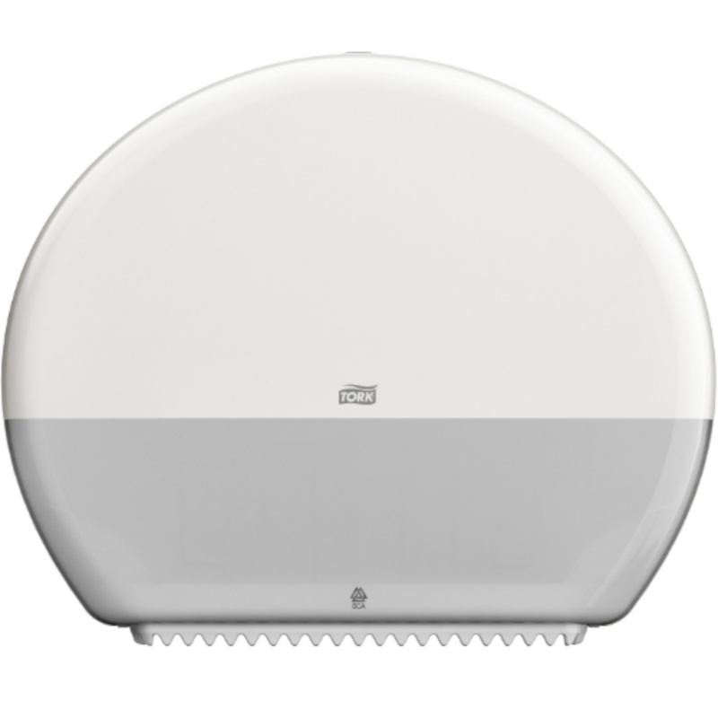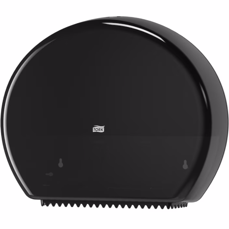 Tork's White (554030) and Black (554038) T1 System Jumbo Toilet Roll Dispenser in Elevation Design is ideal for high-traffic washrooms.